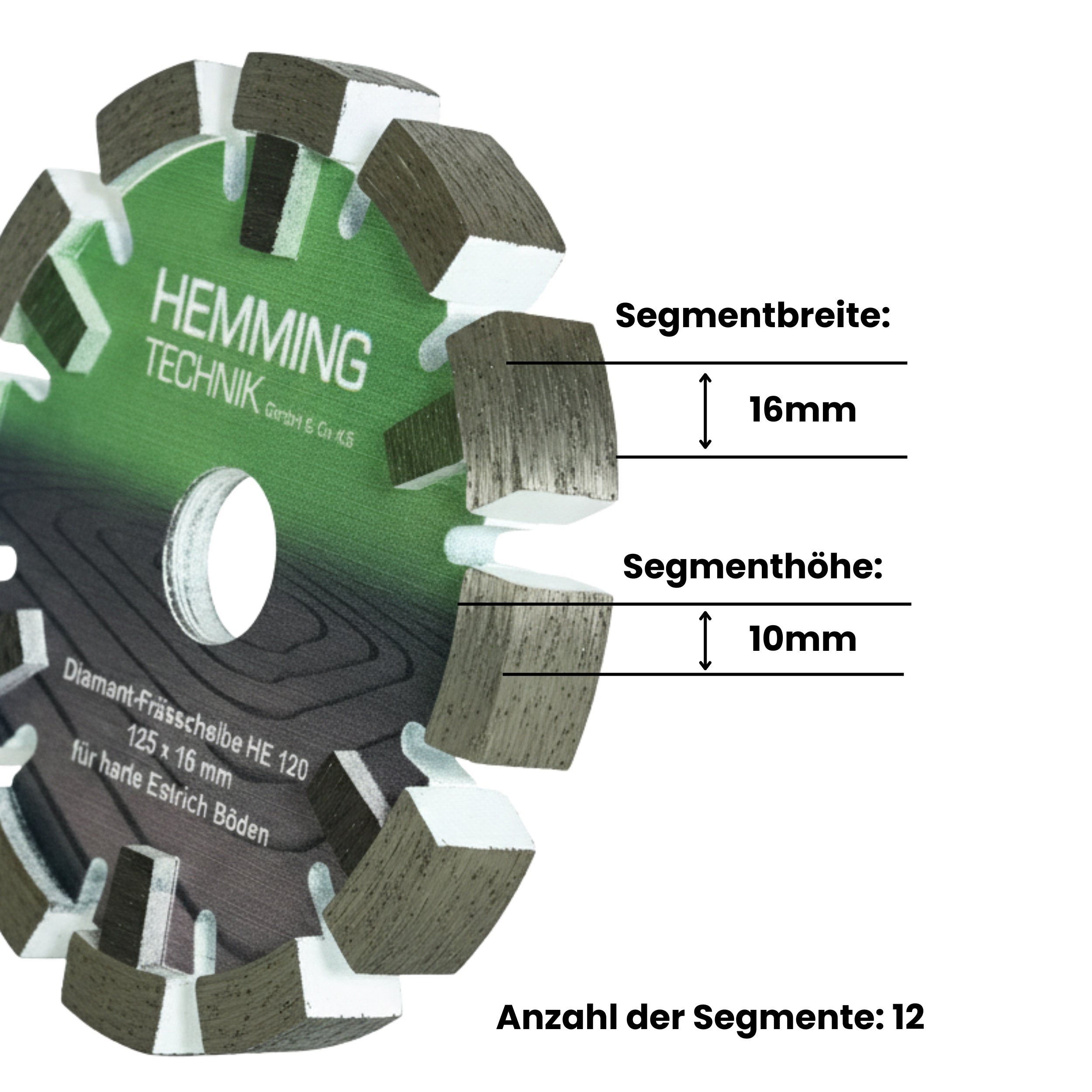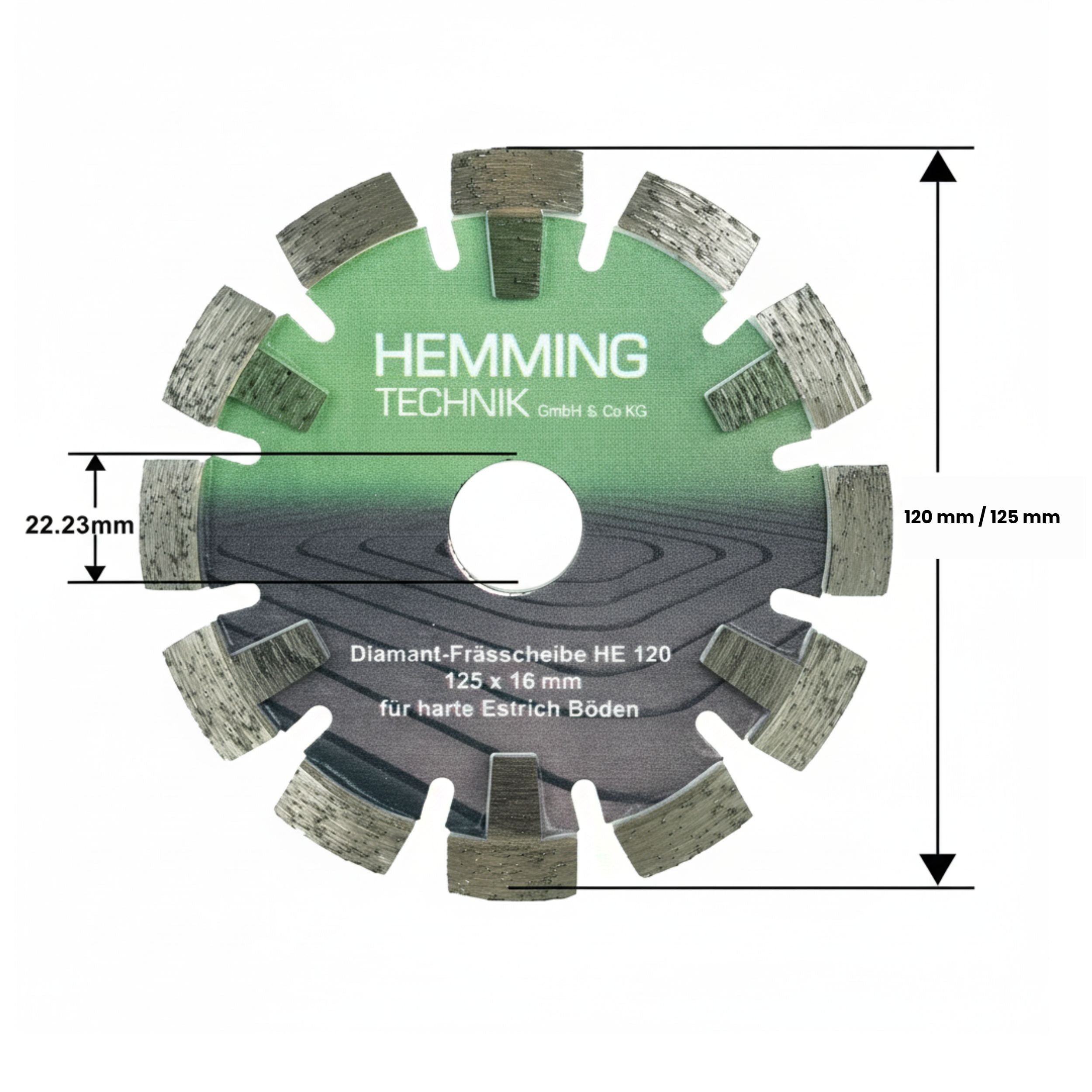 - Vielseitige Anwendung: Durchmesser 120-125mm mit 22,23mm Bohrung passt auf perfekt auf unsere Bodenfräsehn HE120. Maximale Frästiefe von 25mm für verschiedene Installationsanforderungen.