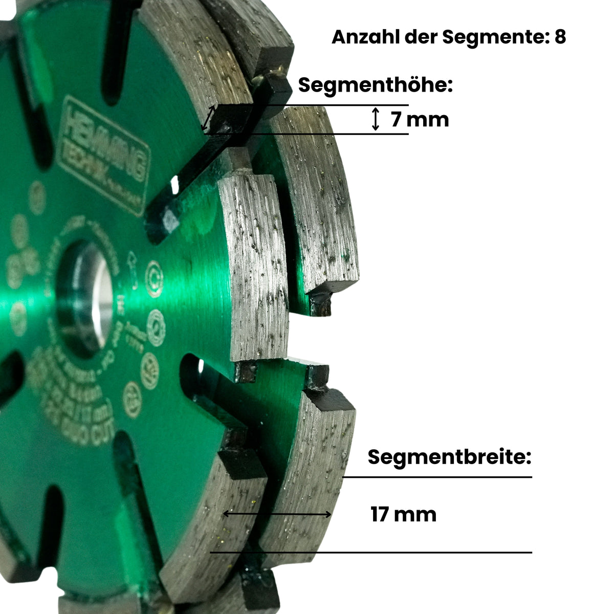 Die speziellen Stutzsegmente sind ein echter Gamechanger: Sie verhindern das lästige Hinterschleifen an den Nutwänden, das sonst zu unsauberen Kanten und Nacharbeit führt. Das Ergebnis sind perfekt gerade Schlitze mit sauberen Wänden.